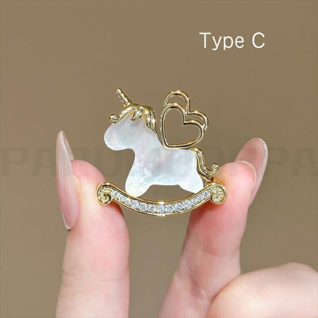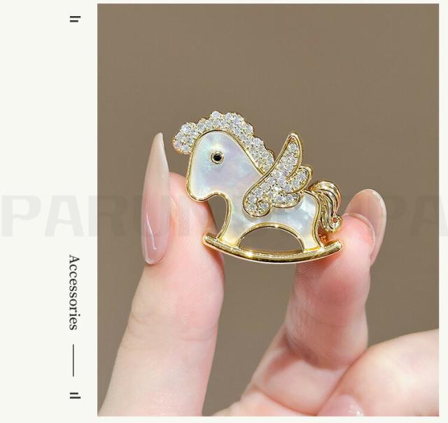 かわいい馬 ブローチ 天然の貝殻 コサージュ 針 ピン おしゃれ うま型 ピンブローチ モダン ゴールド アクセサリー ジャケット 結婚式 パーティー 二次会