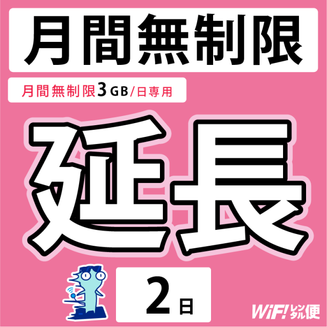 WiFiレンタル 延長注文 2日【月間無制限(3GB/日)用 WiFiレンタルルーター】