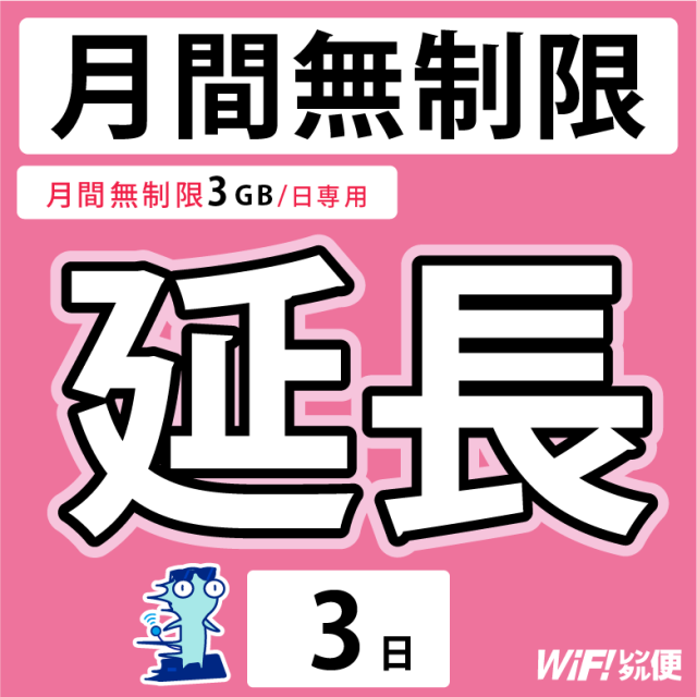 WiFiレンタル 延長注文 3日【月間無制限(3GB/日)用 WiFiレンタルルーター】