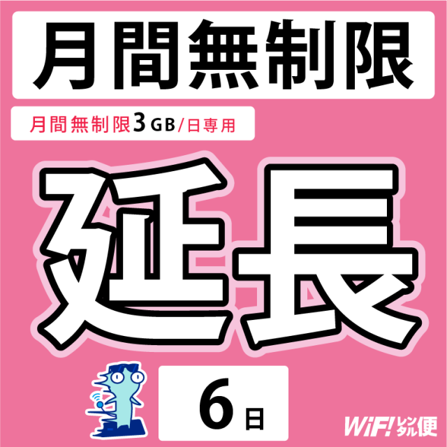 WiFiレンタル 延長注文 6日【月間無制限(3GB/日)用 WiFiレンタルルーター】