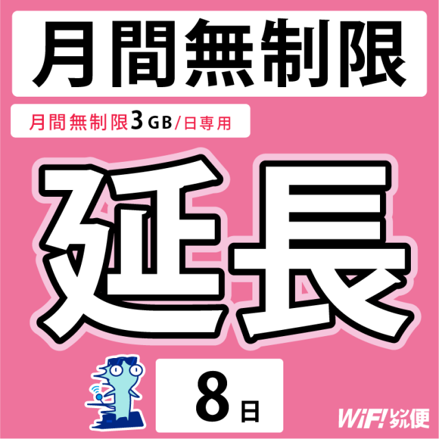 WiFiレンタル 延長注文 8日【月間無制限(3GB/日)用 WiFiレンタルルーター】