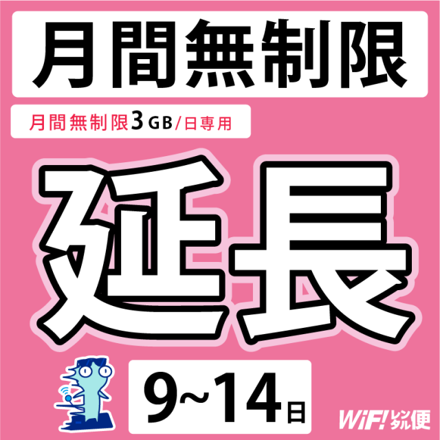 WiFiレンタル 延長注文 9〜14日【月間無制限(3GB/日)用 WiFiレンタルルーター】