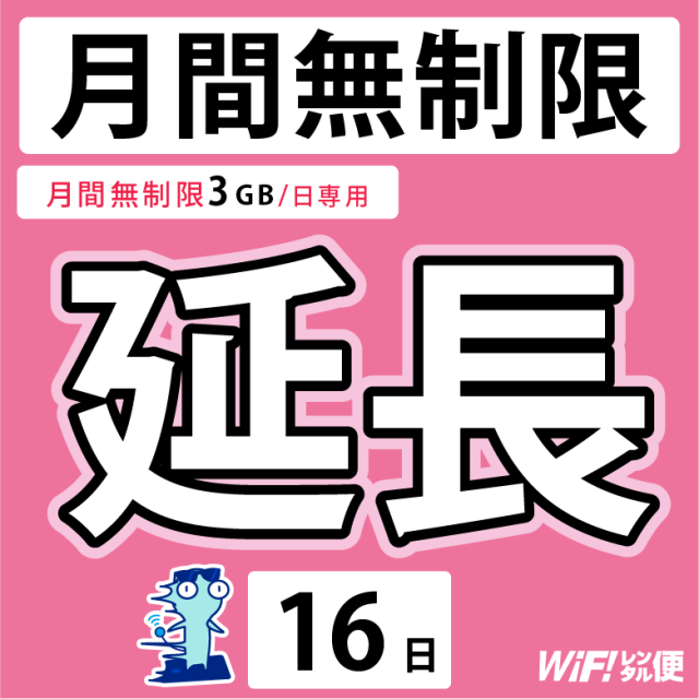 WiFiレンタル 延長注文 16日【月間無制限(3GB/日)用 WiFiレンタルルーター】