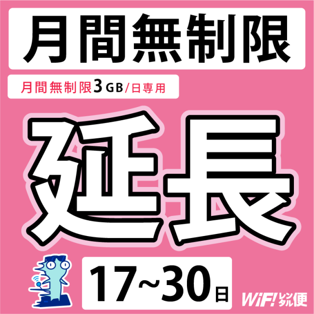 WiFiレンタル 延長注文 30日【月間無制限(3GB/日)用 WiFiレンタルルーター】