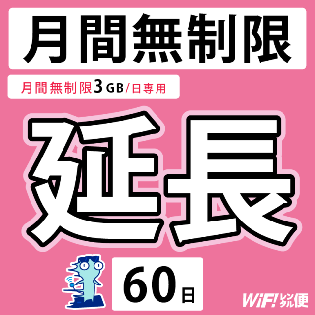 WiFiレンタル 延長注文 60日【月間無制限(3GB/日)用 WiFiレンタルルーター】
