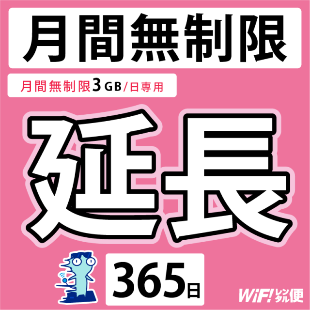 WiFiレンタル 延長注文 365日【月間無制限(3GB/日)用 WiFiレンタルルーター】