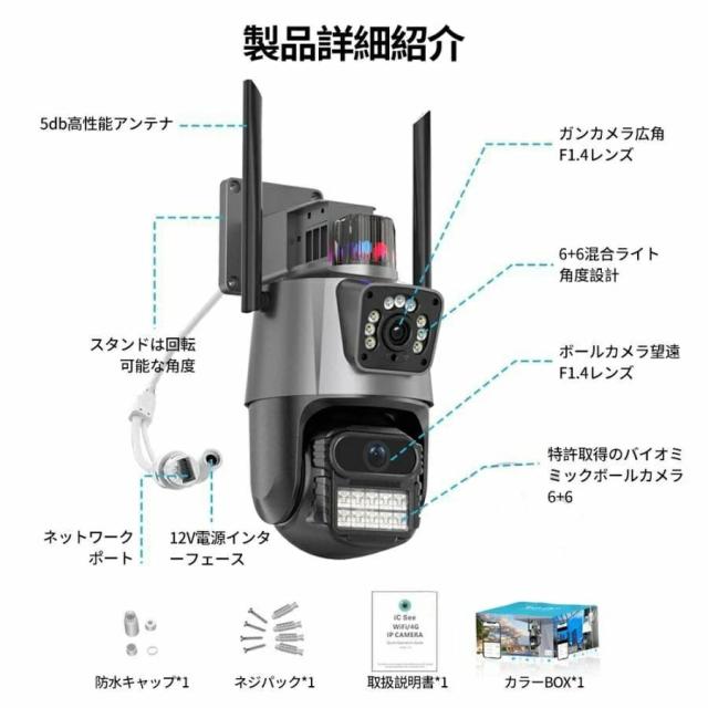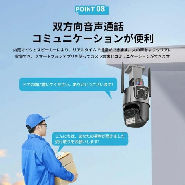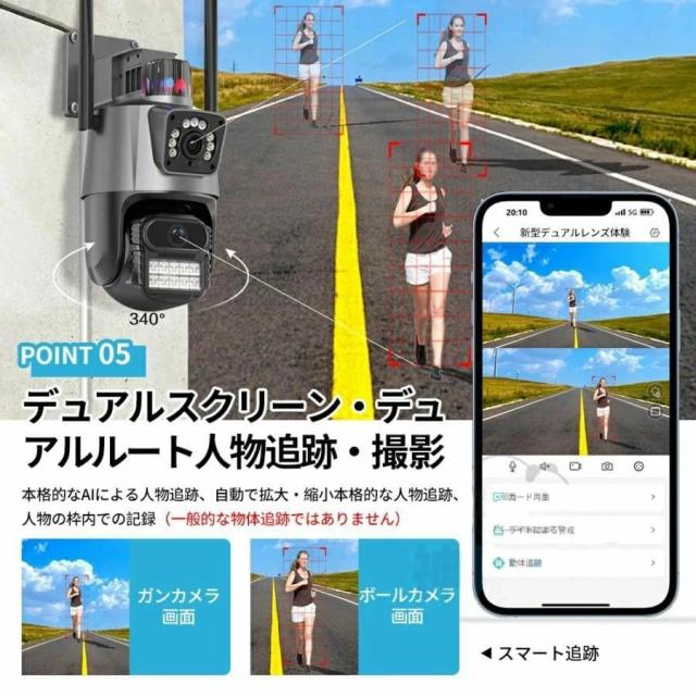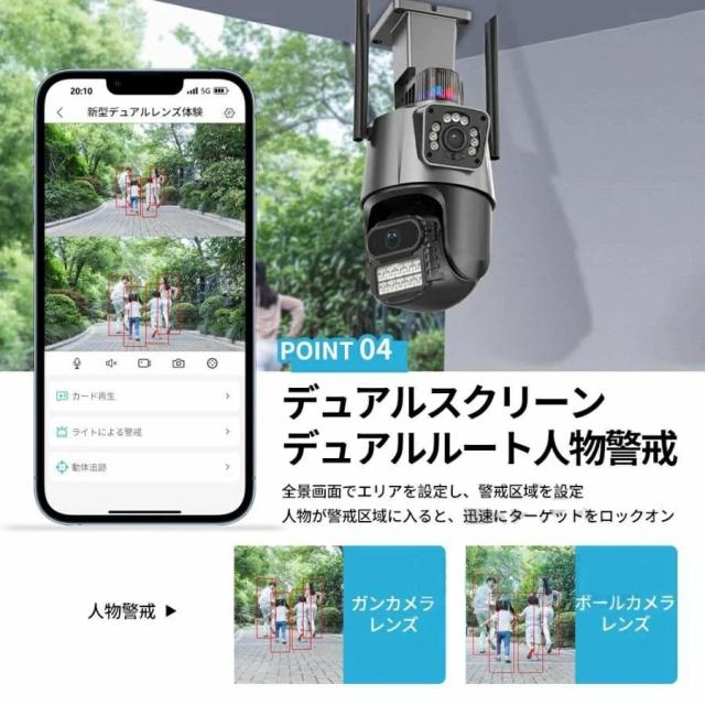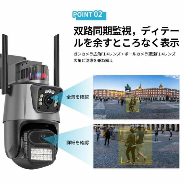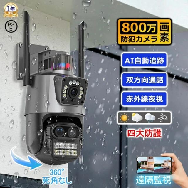 防犯カメラ 屋外 WiFi 800万画素 IP66防水 デュアルレンズ AI人感検知 自動追跡 双方向通話 工事不要 簡単設定 家庭用 監視カメラ