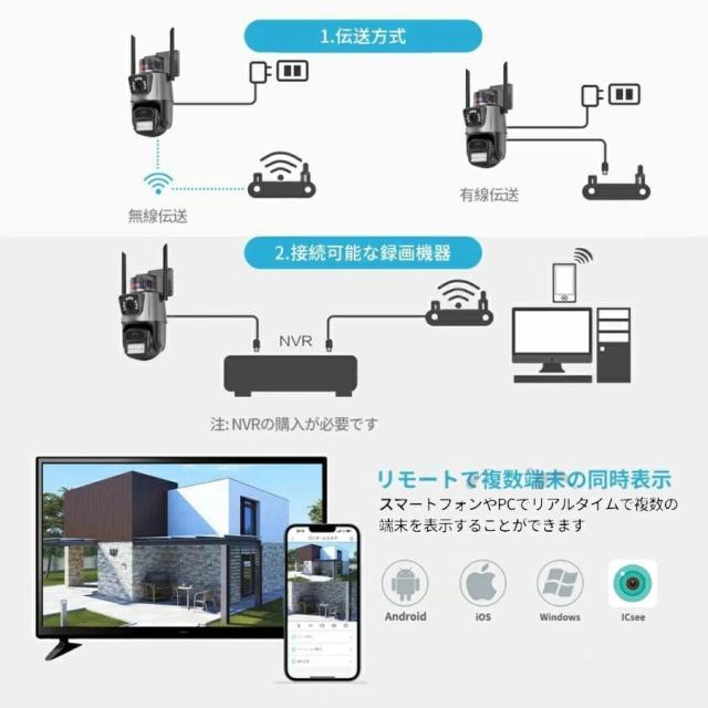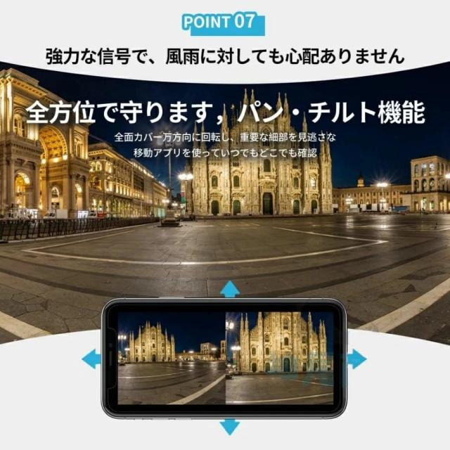 証拠映像鮮明に残せる800万画素!外出先や海外でもスマホを経由して映像の鑑賞、再生、設定ができます。携帯デバイス数台同時に鑑賞できます。