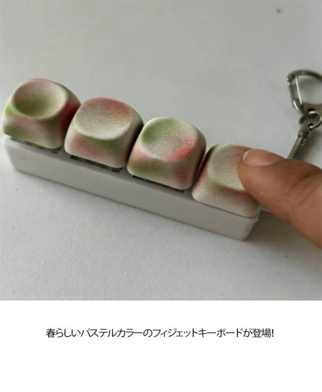 | ● 春らしいパステルカラーのフィジェットキーボードが登場! ● 本物の青軸メカニカルスイッチが生み出すカチカチという爽快な音が響きます 。指先に伝わる心地よいクリック感は一度触れると病みつきになる楽しさです。 ● 勉強や仕事の合間にクリックすることでストレス解消や集中力アップをサポートします。 ● 便利なDカン付きなのでお気に入りのバッグや鍵に付けてどこへでも持ち運べます。 ● 暇つぶしや手持ち無沙汰な時の手遊びとして大人から子供まで幅広く楽しめます。 ● 軽量でコンパクトな設計のためスマホケースのアクセサリーとしても最適です | |