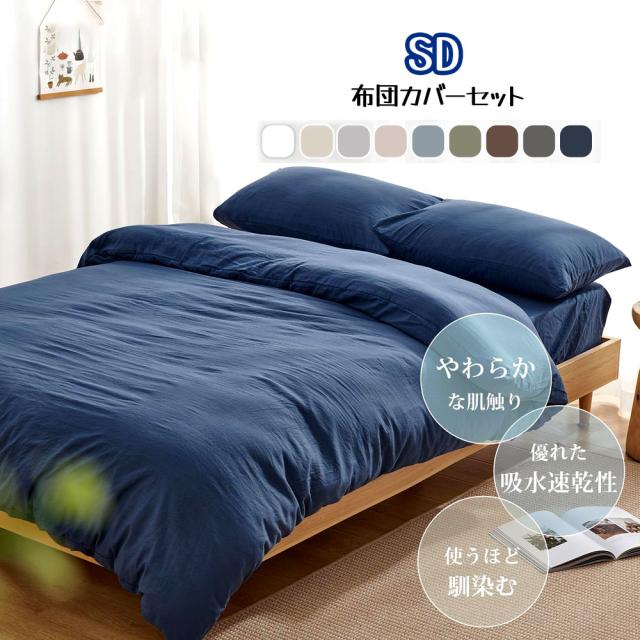 寝具カバーセットSD 布団カバーセット 洗いざらし シワ加工 水洗い やわらか 掛け布団カバー ボックスシーツ 枕カバー吸水速乾OK 肌に優しい 洗える 無地 シンプル オールシーズン