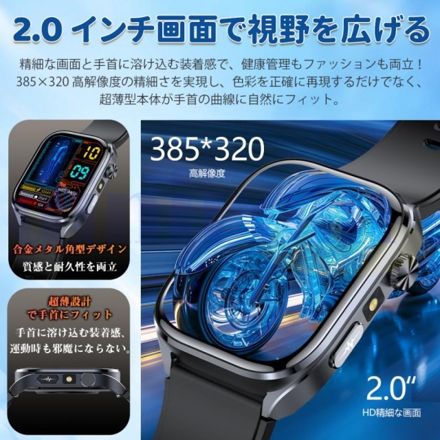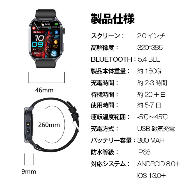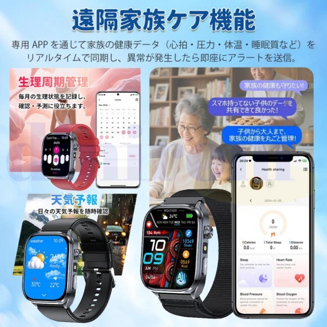 スマートウォッチ 医療レベル糖値 血圧測定 ECG心電図 通話機能 体温 血圧測定 体組成 血液成分分析 LINE着信通知 血中酸素 歩数計 睡眠 iPhone Android対応