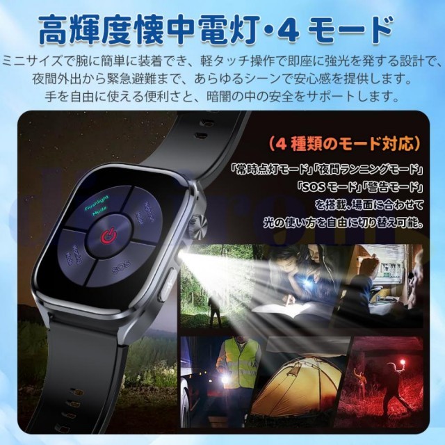 ●他にも通話機能、強い懐中電灯(4モード)、2.5DダイナミックUI、ストップウォッチ、カウントダウン、歩数計、カロリー、距離、運動モード、着信通知、腕上げ点灯、遠隔撮影、音楽制御、電卓、ゲーム、アラーム、SOSモード、座りがち注意などの多機能が搭載され、毎日の生活習慣の改善や日常健康管理に役立ちます