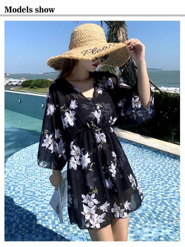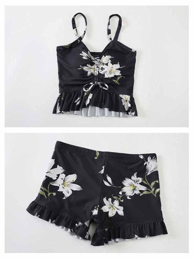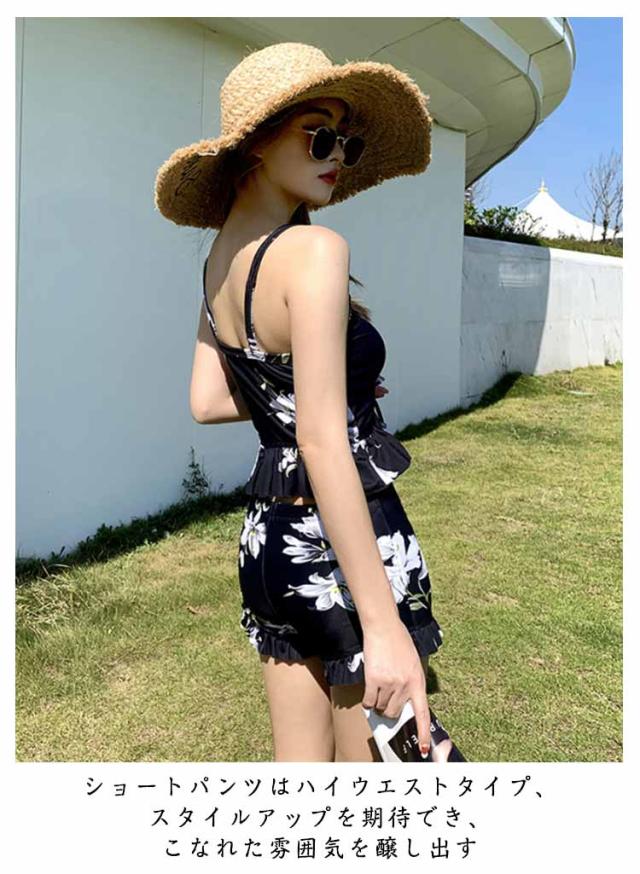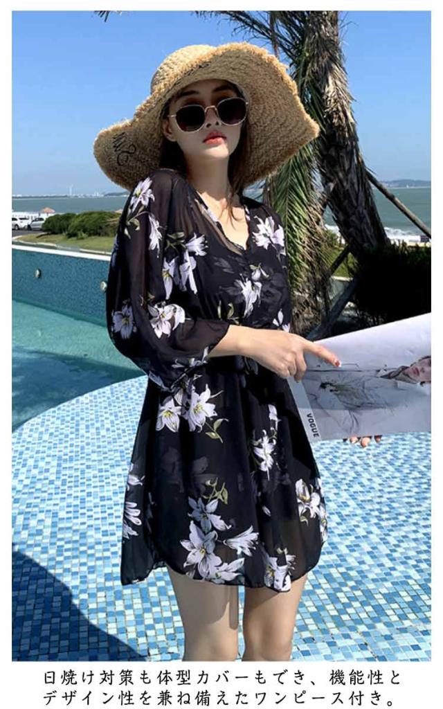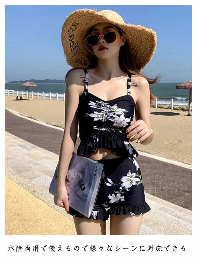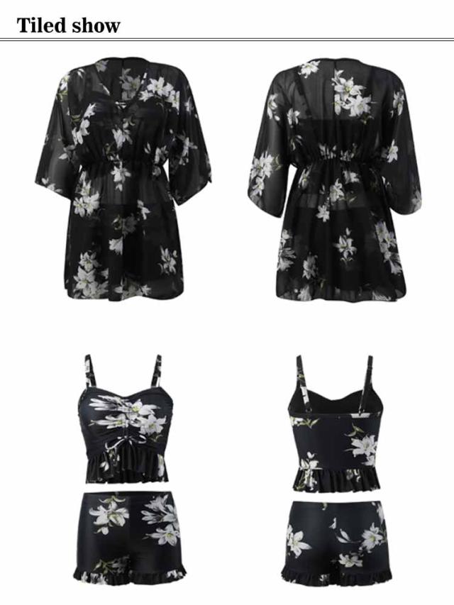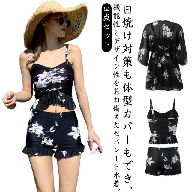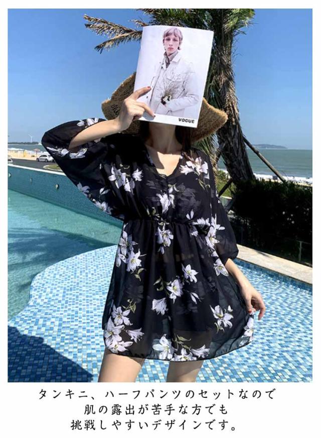 セパレート UVカット タンキニ リゾート 3点セット ラッシュガード 水着 海水浴 長袖 ワンピース 体型カバー ママ水着 レーストップス プール セパレート水着 露出控えめ 50代 ハーフパンツ 温泉 海 タンキニ 花柄 総柄 大人可愛い おしゃれ 30代 40代 60代