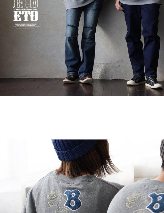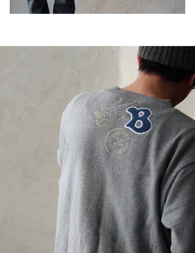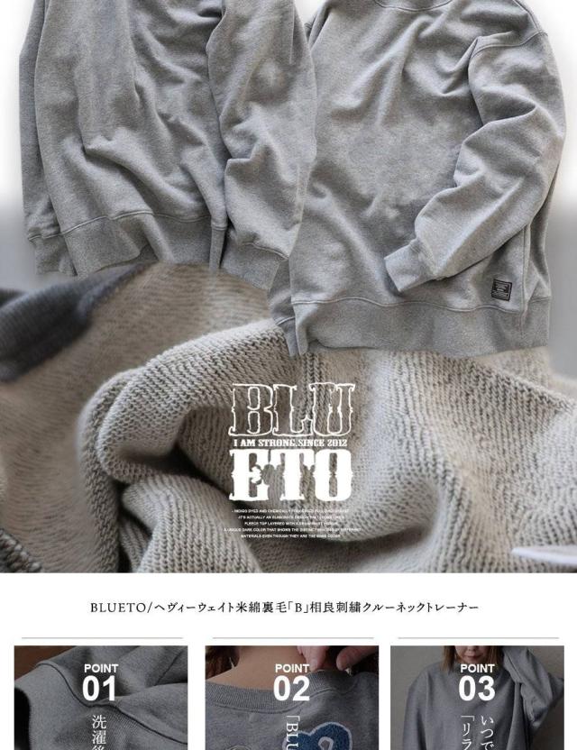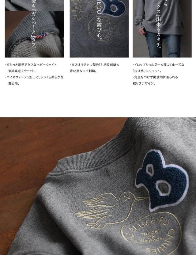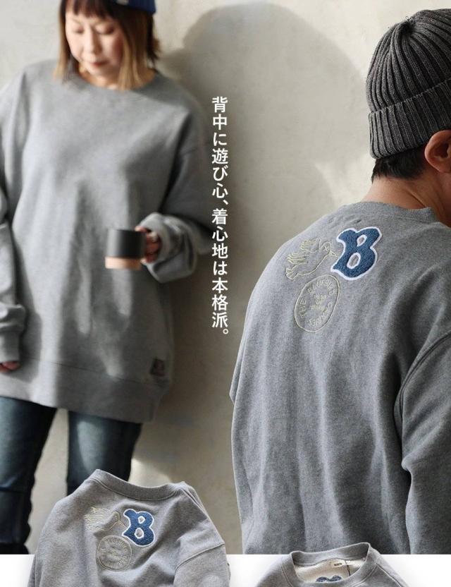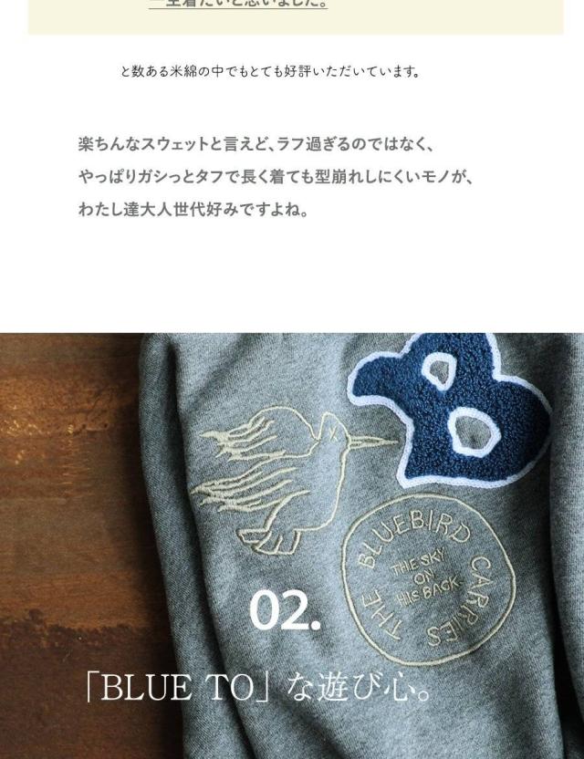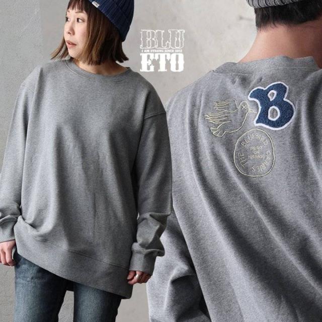 トレーナー スウェット メンズ レディース 長袖 裏毛 綿100 USAコットン ワイド 着痩せ しっかり 丈夫 軽い 柔らか 袖 裾 リブ ゆったり お尻 体系カバー バード サガラ 刺繍 大き目 スエット アメカジ 大人 カジュアル パティ BLUETO ブルート