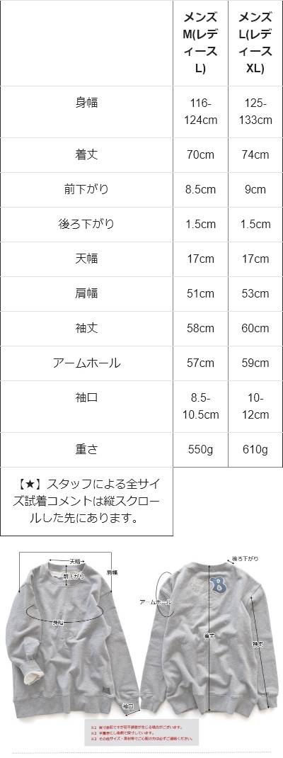 トレーナー スウェット メンズ レディース 長袖 裏毛 綿100 USAコットン ワイド 着痩せ しっかり 丈夫 軽い 柔らか 袖 裾 リブ ゆったり お尻 体系カバー バード サガラ 刺繍 大き目 スエット アメカジ 大人 カジュアル パティ