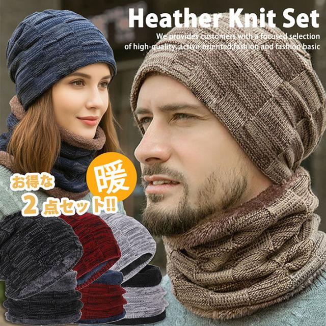 【お得♪】ニット帽 2点セット マフラー ネックウォーマー スヌード ボア お得 耳あて NEK 7986615 イヤーマフ 防寒 メンズ レディース キッズ ニットキャップ 帽子 ニット 秋冬