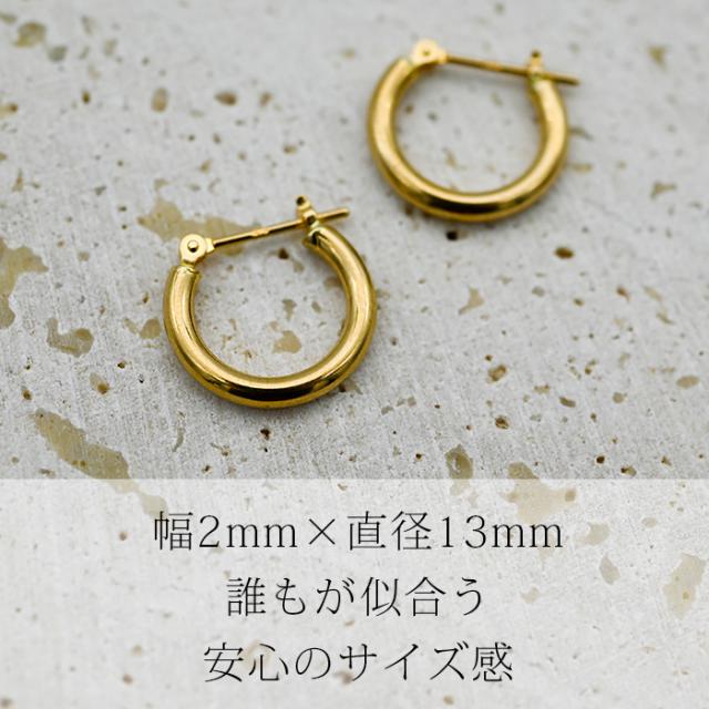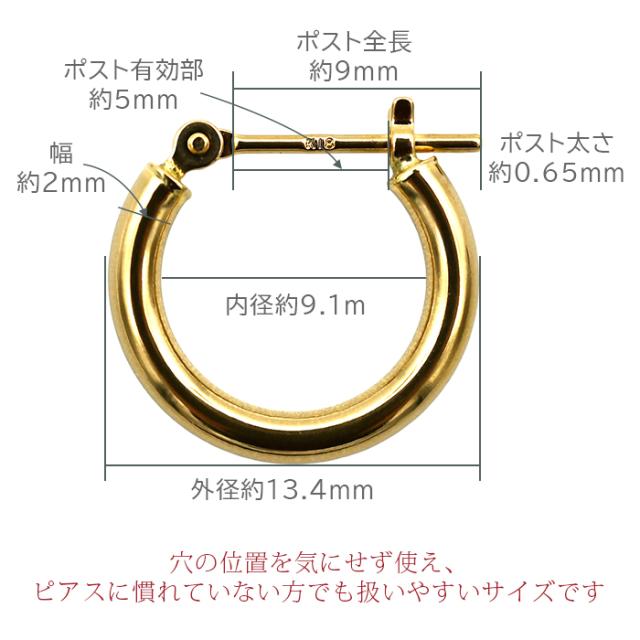 【ジュエリーの町 山梨甲府製】K18 フープピアス 18金 イエローゴールド 2x13mm 片耳 1個売り 日本製 品質保証書 アレルギー対応 小さい 細い シンプル メンズ レディース 重ね付け