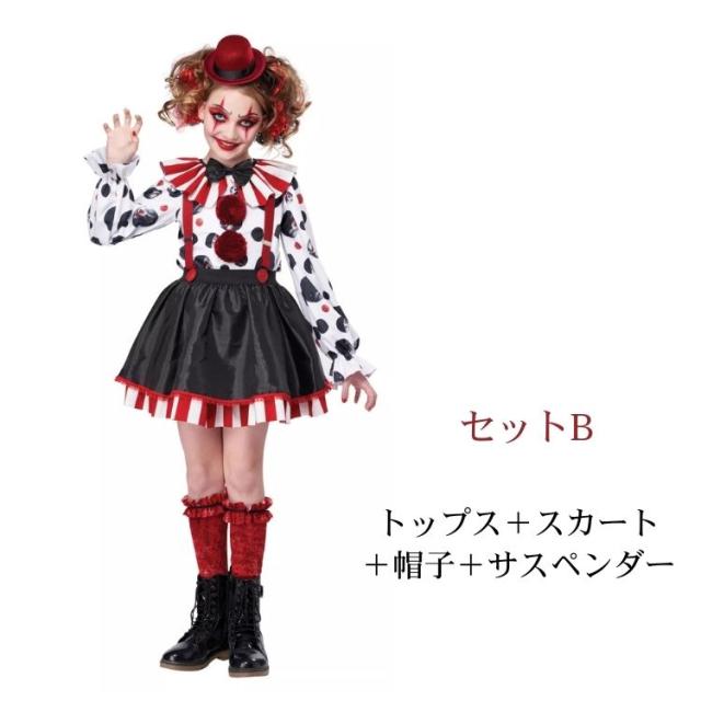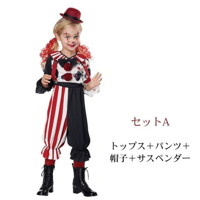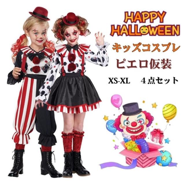 [新品]ハロウィン 仮装 子供 ピエロ コスプレ 衣装 コスチューム ジョーカー ハロウィーン ジュニア オールインワン 男の子 女の子 魔女 キャラクター デビル ダンス衣装 変装 演劇 発 キッズ
