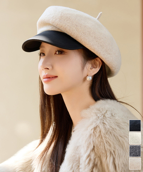 ベレー帽とキャスケットを組み合わせた、トレンド感のあるつば付き帽子。