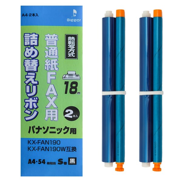 普通紙ファクス用インクフィルム KX-FAN190 対応 KX-FAN190W、KX-FAN190V,BIGGER製 18m,2本入