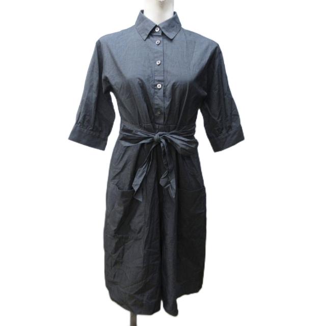 【中古】セオリー Theory 美品 シャツワンピース コットン シルク混 リボン ベルト 7分袖 ロング 2 約M 灰 ■YHS11