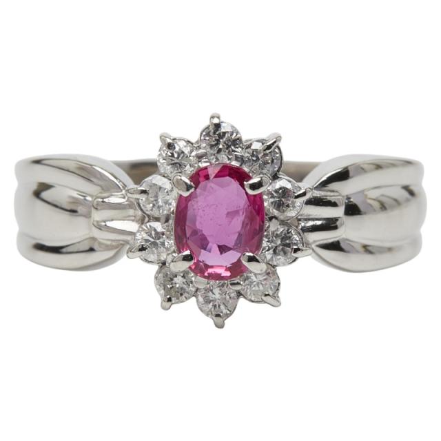 Pt900 プラチナ ルビー0.45ct ダイヤ0.26ct フラワーモチーフ リング 指輪 レディース 10号 中古