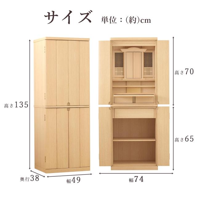 祖霊舎 神徒壇 単品 モダン 家具調 2段型 台付 収納付き 床置き ライト・タモ カラー 高さ135cm×幅49cm 神道 祖霊社 神棚 神具 (代引き決済不可商品)