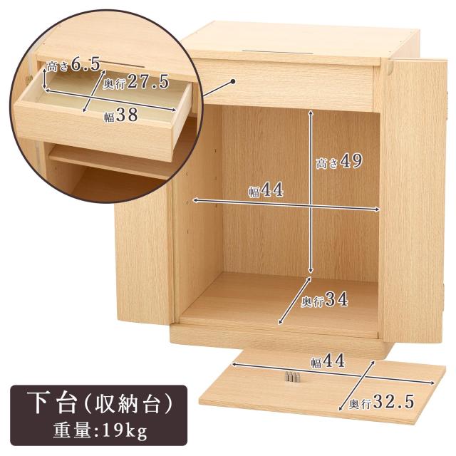 上台・下台にある「引き出し収納」は小物や神具をすっきり整理。