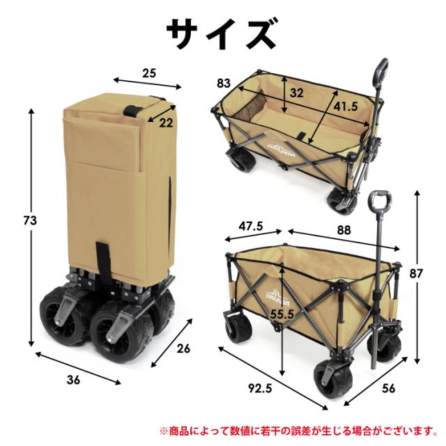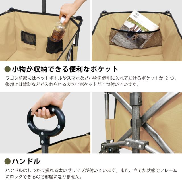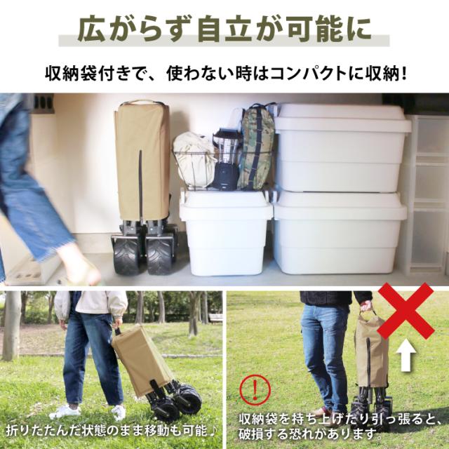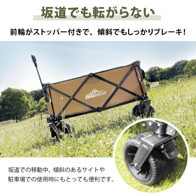 アウトドアワゴン ブレーキ付 キャリーカート キャリーワゴン 耐荷重200kg 折りたたみ 大型タイヤ 大容量 110L 4輪 悪路走行可能 ワンタッチ式 キャンプ レジャー スポーツ 運動会 お花見