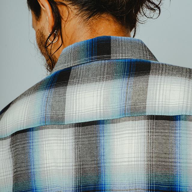 LIGHT FLANNEL L/S SHIRTS BIG MIKEアーカイブから厳選したヴィンテージアイテムをもとに、生地感と柄の雰囲気を丁寧に再現したライトフランネルシャツ。