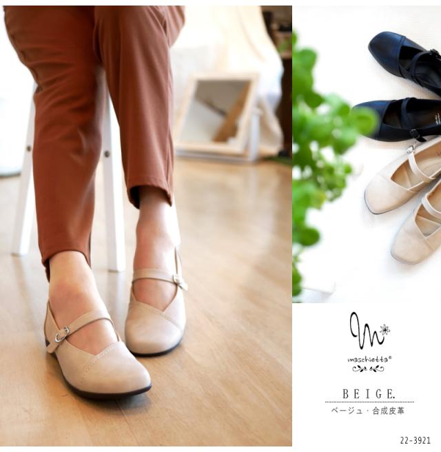 『マスチェッタ』甲ストラップ・オブリークトゥのカジュアルパンプス★