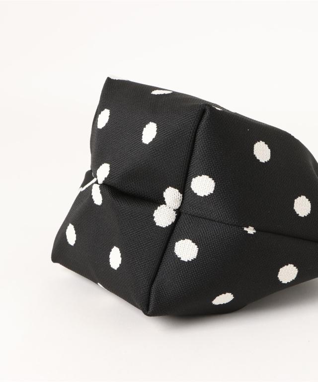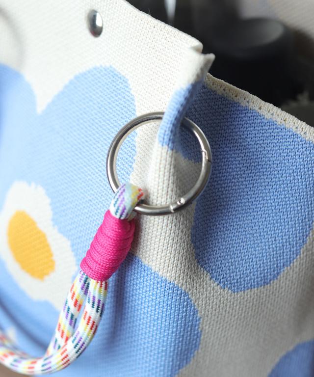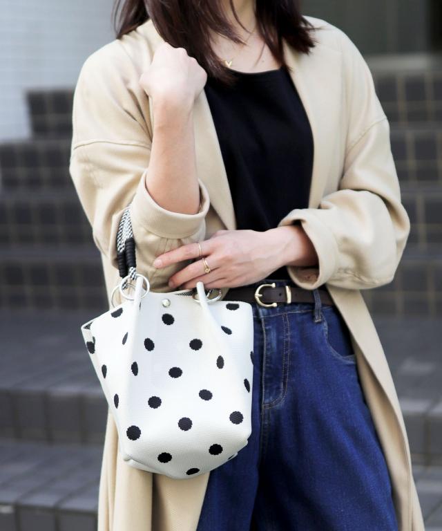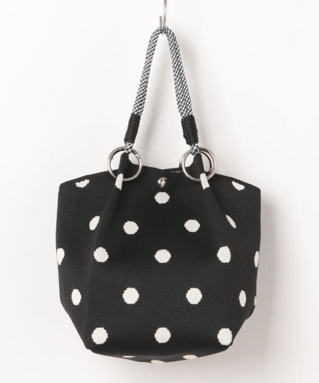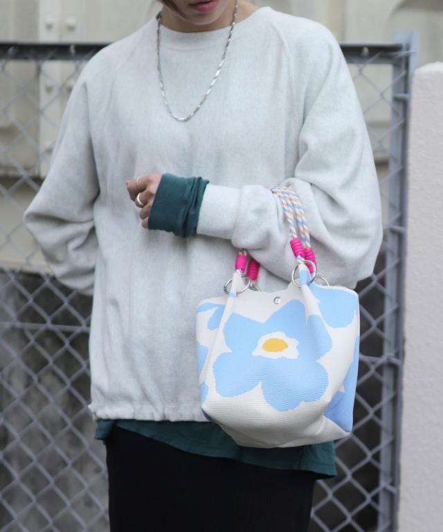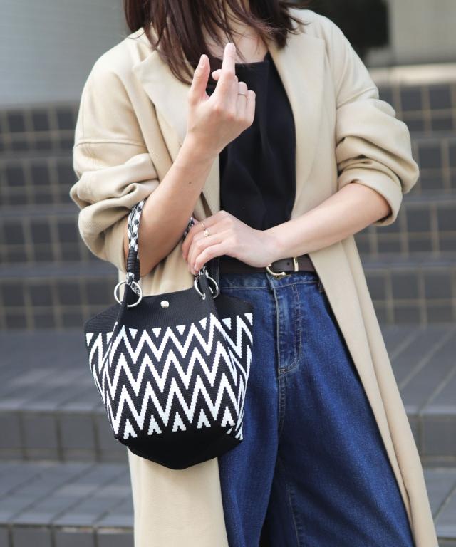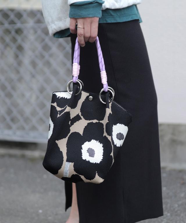 しっかり厚みのあるニット素材に、カジュアルな印象のコードハンドルを組み合わせた可愛いハンドバッグ。