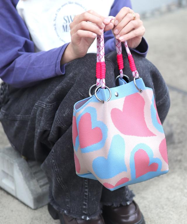 ニットバッグ ミニ 持ち手 小さめ ハート ハンドバッグ レディース 人気 黒 冬 きれいめ ミニハンドバッグ カジュアル 普段使い バッグ コード ハンドル アソート柄 ニット バック ハンド 旅行 サブバッグ 通勤 通学 おしゃれ 大人 シンプル 旅行バッグ かわいい 可愛い