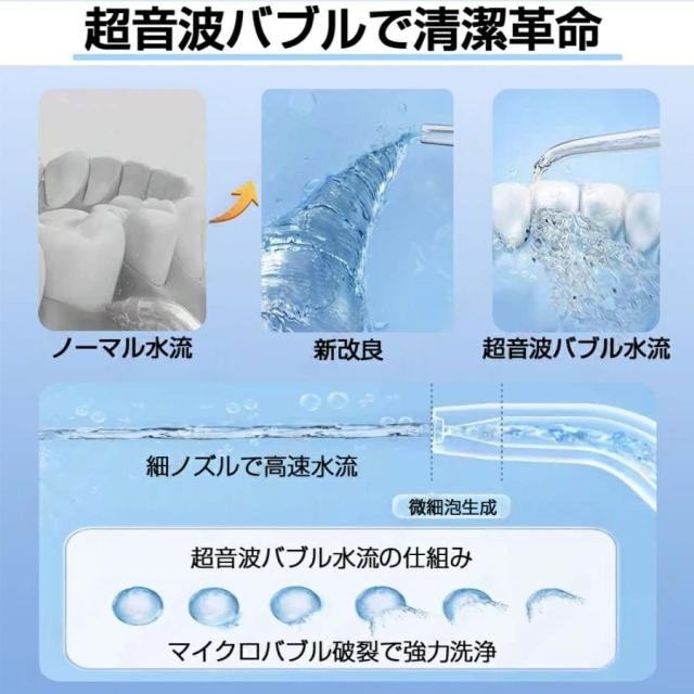 細く集中した水流で、歯垢や汚れをピンポイントで効率的に除去。