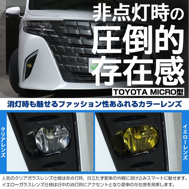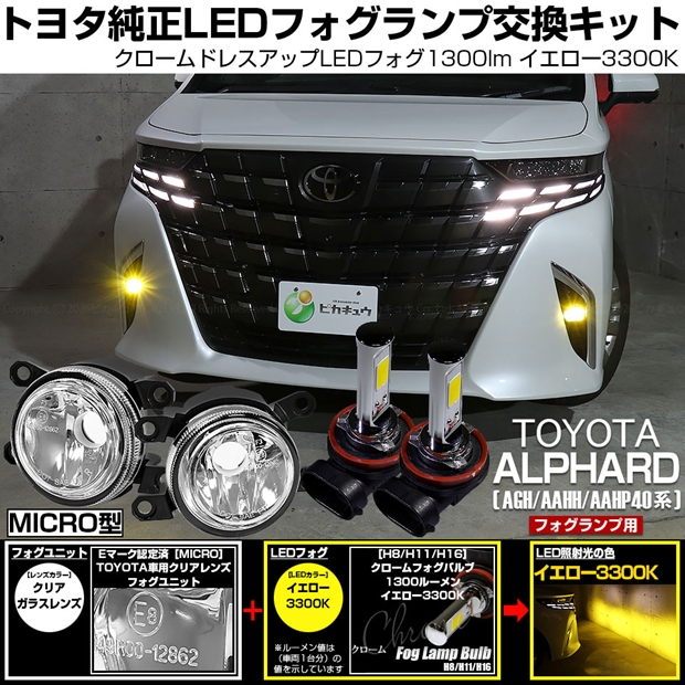 トヨタ アルファード (AGH/AAHH/AAHP40系)対応 H11 led MICRO クロームフォグ 1300lm クリアガラスレンズ ユニット フォグランプキット イエロー 44-B-9