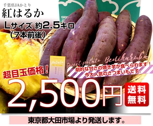 千葉県産 JAかとり 紅はるか Lサイズ 約2.5キロ 7本前後 送料無料 さつまいも サツマイモ 薩摩芋 新芋 市場発送【発送時期:カート内に記載しております】