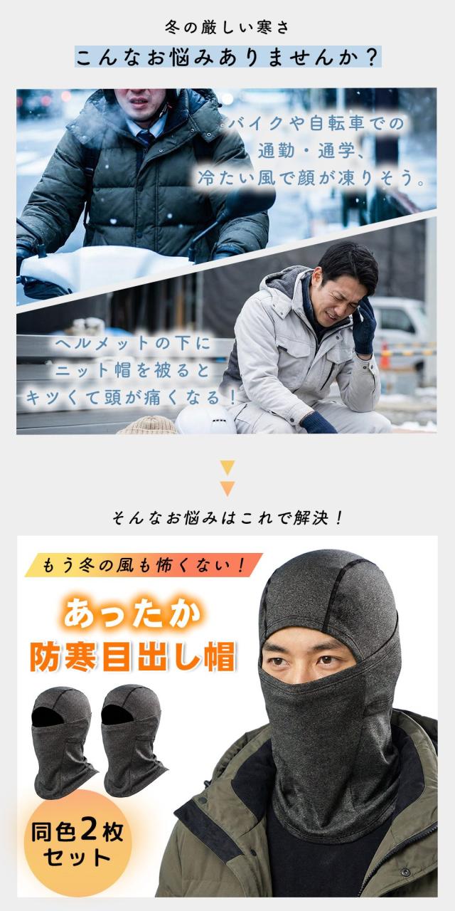 【mitas公式】 防寒目出し帽 2枚セット 目出し帽 フェイスマスク 裏起毛 防寒 あたたかい 寒風 通勤 通学 自転車 バイク 一体型 帽子 耳当て マスク マフラー 保温 首元 ストレッチ素材 薄い 3way ヘルメット インナー 伸縮性 フレア形状 スキー スノボ ジョギング 冬