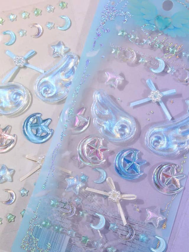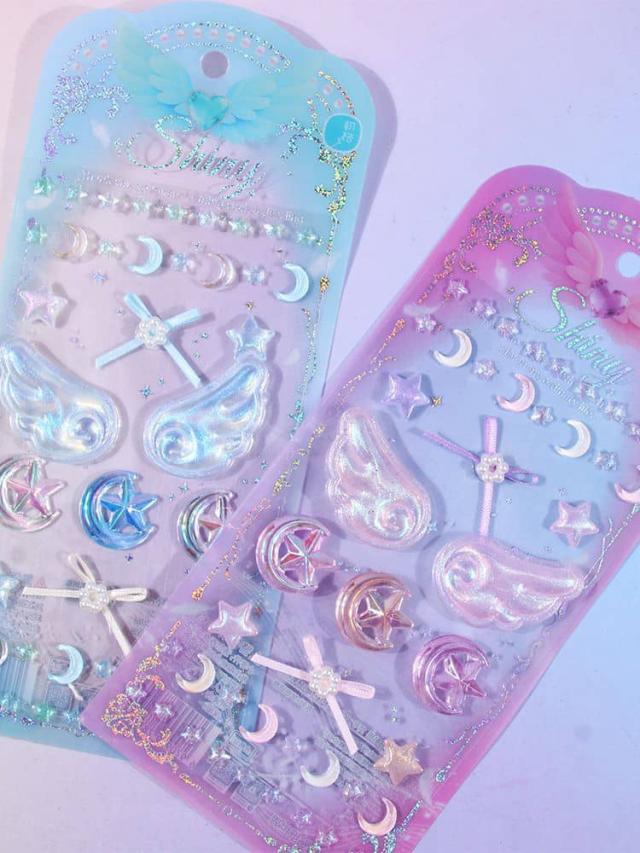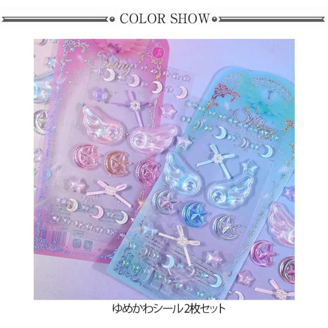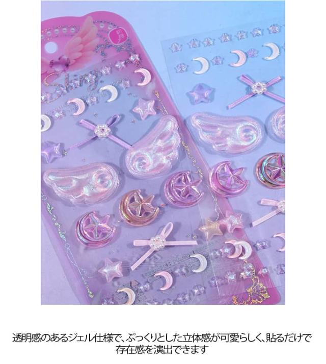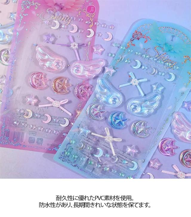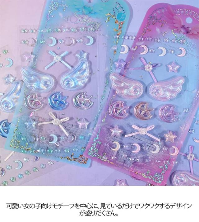 2枚セット 3Dシール 立体シール 魔法使い デコシール キラキラ DIY 手芸 装飾 デコステッカー おはじきシール ぷぅくり つやつや 立体シール かわいい 泡ステッカー SNS映え 送料無料 文具 翼 星 月 女の子 ギフト プレゼント ぷっくりシール