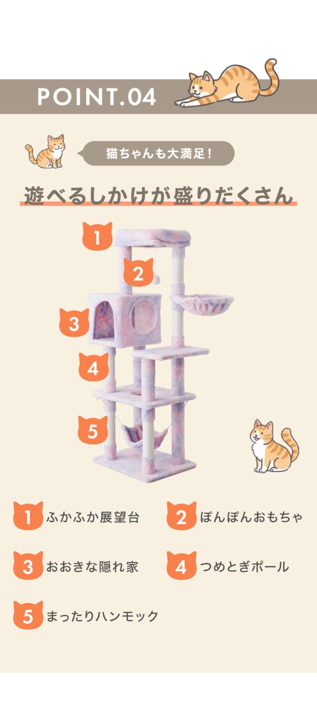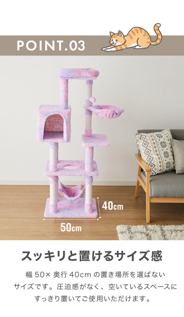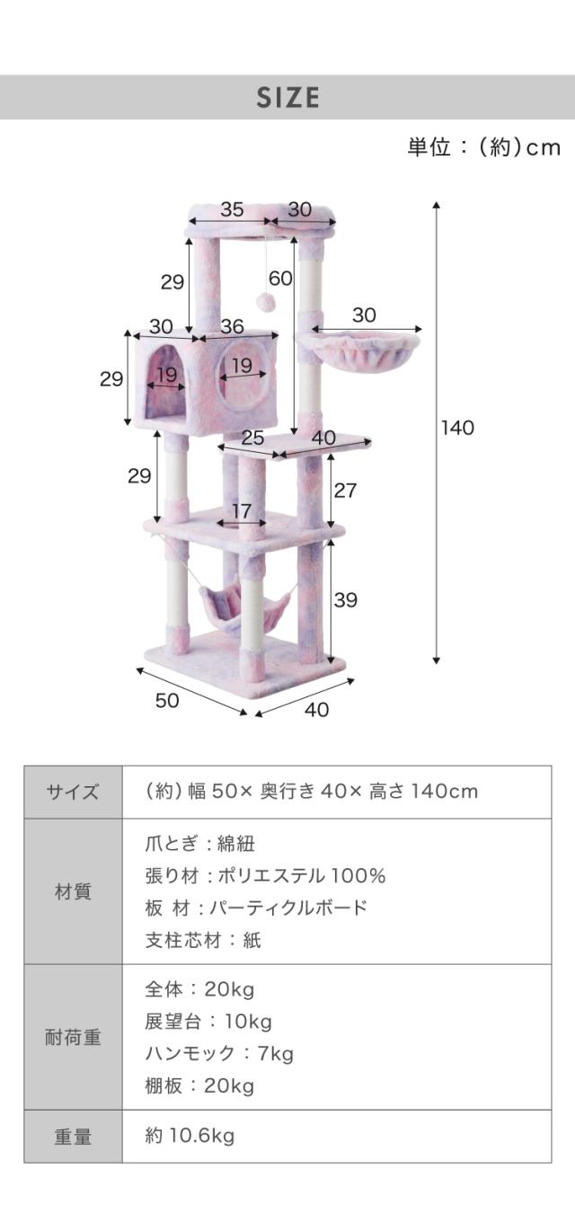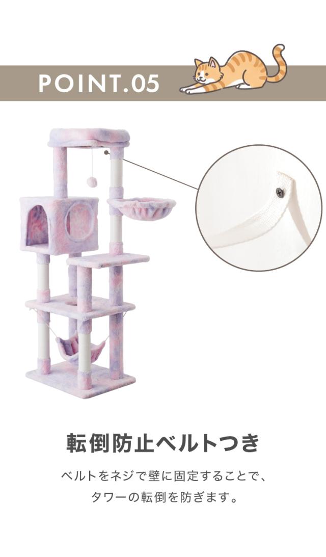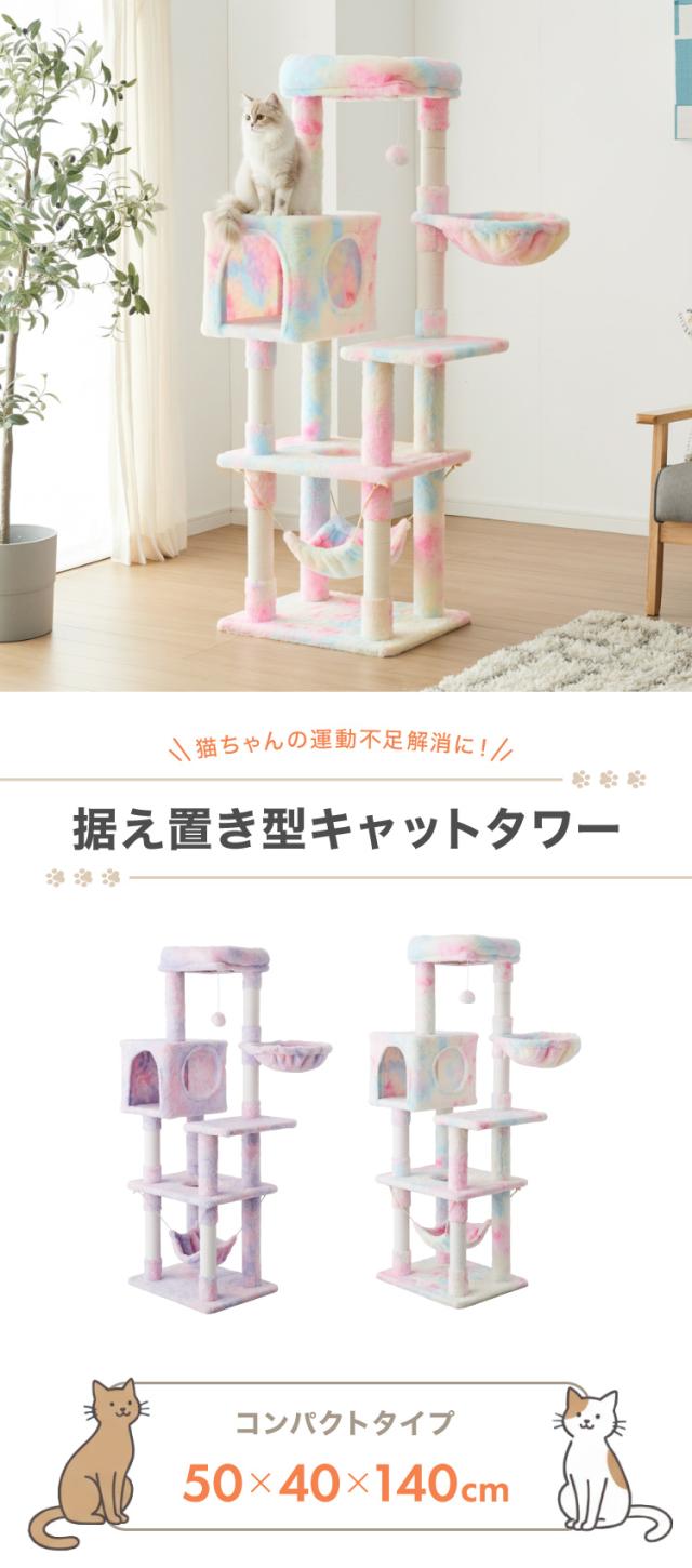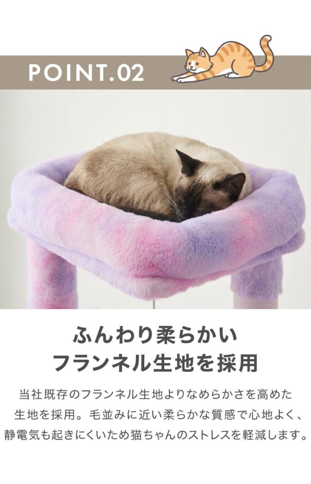 キャットタワー、キャットハウス、キャットツリー、猫タワー、据え置き、ハウス、ハンモック、猫、ねこ、ネコ、爪とぎ、つめとぎ、ベッド、おもちゃ、多頭飼い、シンプル、かわいい、インテリア、ペット、ペット用品、猫用品、省スペース、置き型、低ホルムアルデヒド、エコテックス、FSC認証、頑丈、安定、紫、運動不足、ストレス解消