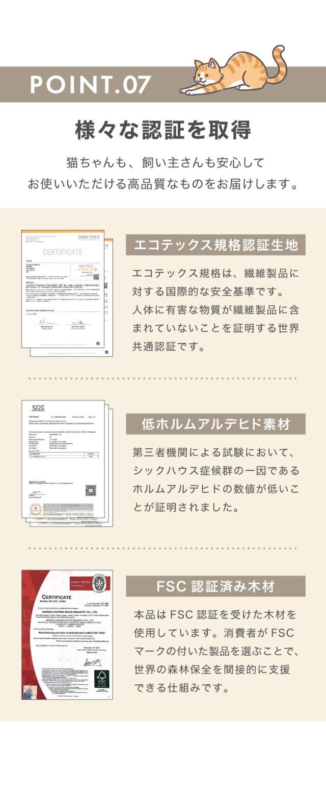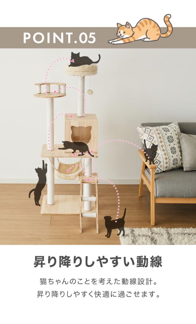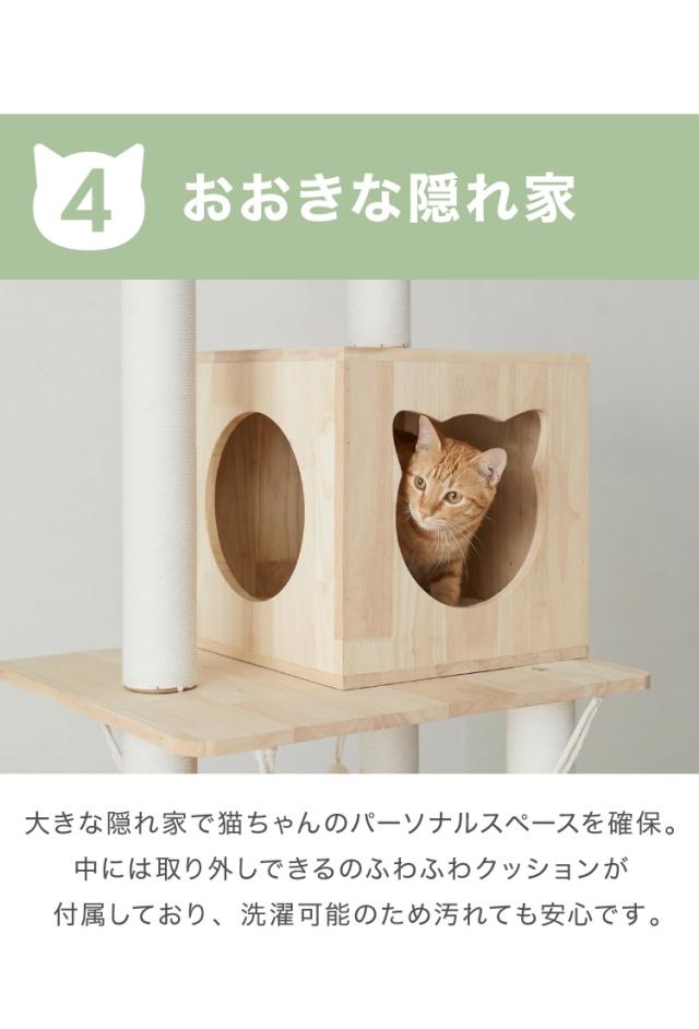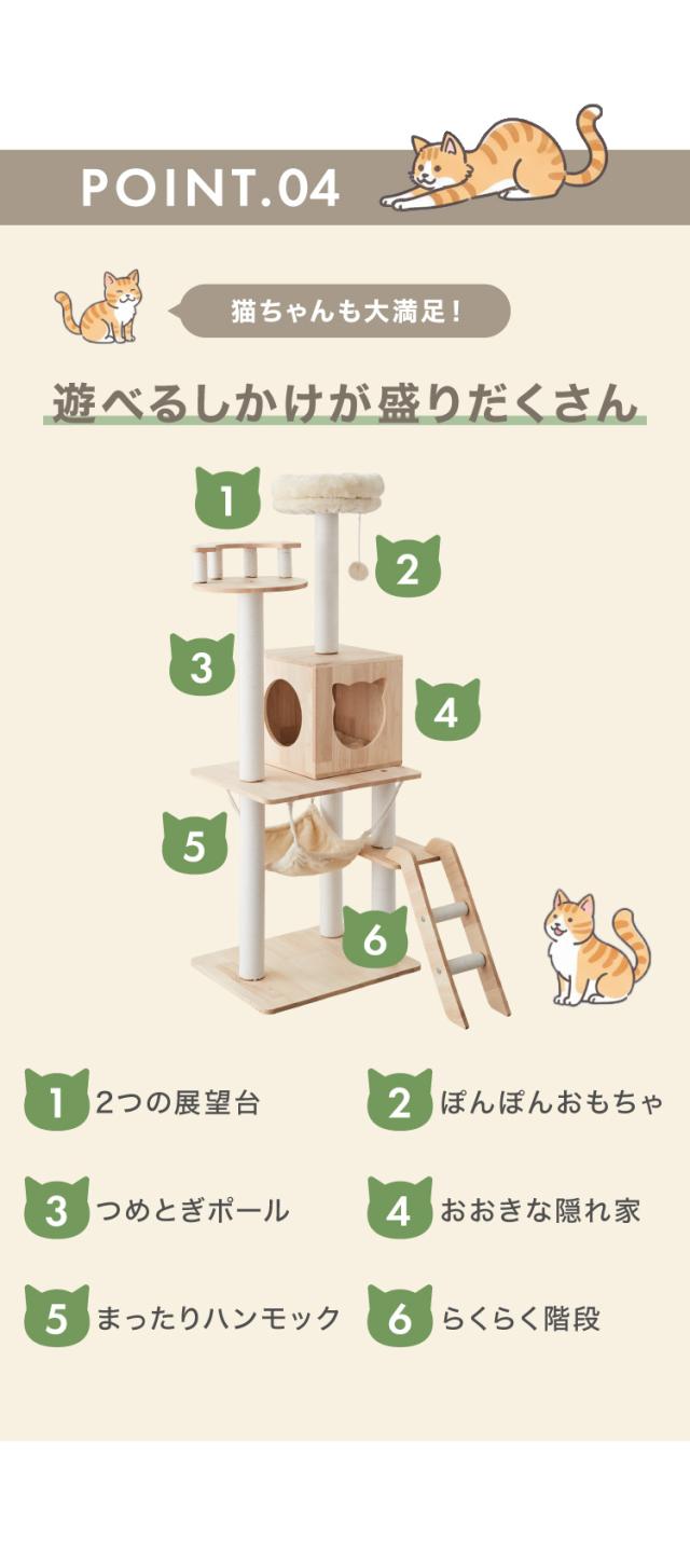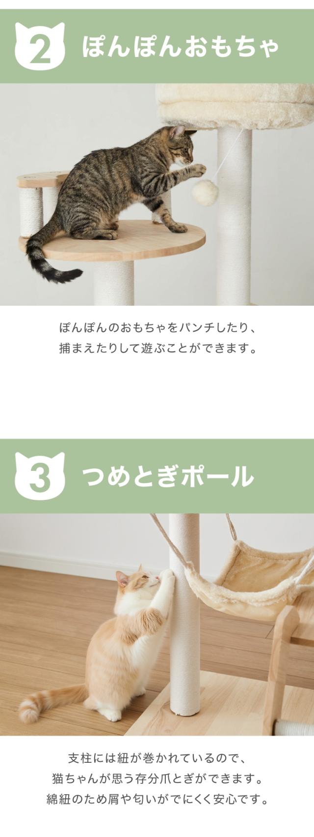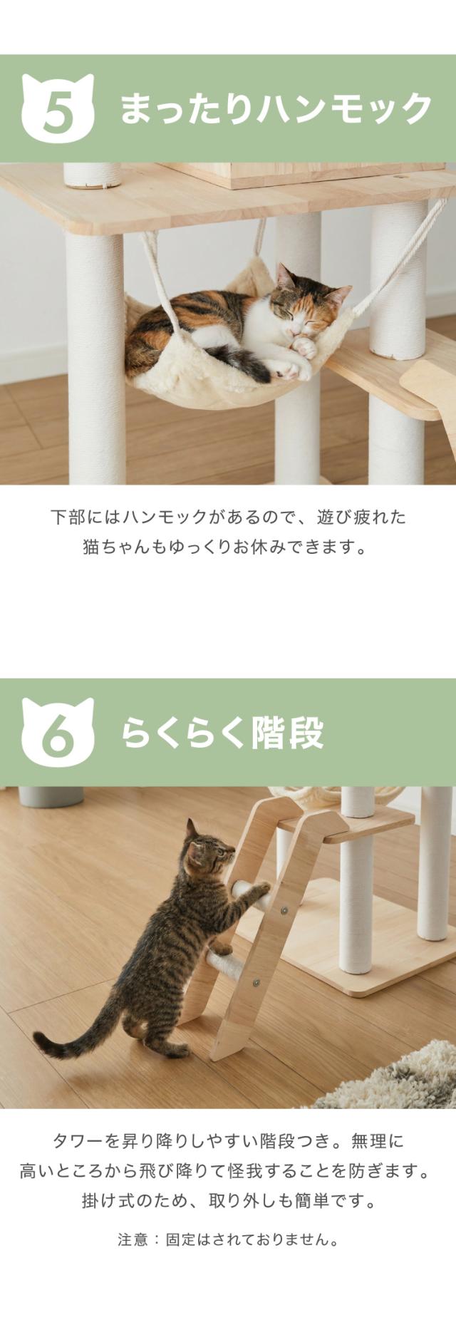 キャットタワー、キャットハウス、キャットウォーク、キャットツリー、猫タワー、据え置き、ハウス、ハンモック、猫、ねこ、爪とぎ、つめとぎ、ベッド、おもちゃ、多頭飼い、シンプル、かわいい、インテリア、ペット、ペット用品、猫用品、省スペース、置き型、登りやすい、低ホルムアルデヒド、エコテックス、FSC認証