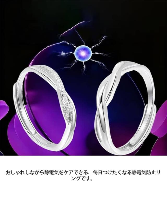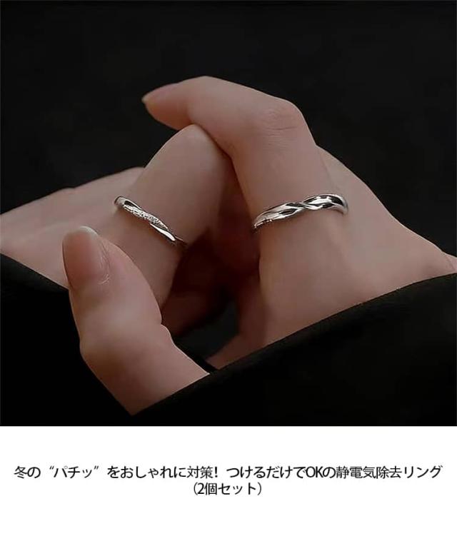 静電気除去 リング 指輪 サイズ調節可能 2個セット 静電気防止グッズ 強力 静電気軽減 ゆびわ おしゃれ 華奢 ペアリング 男女兼用 レディース メンズ 静電気対策 アクセサリー シルバー 送料無料