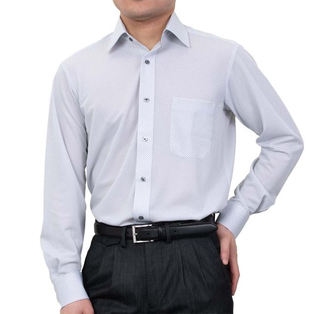 ニット ワイシャツ ※裄詰め対応不可 メンズ 長袖 ノーアイロン ストレッチ グレー 市松模様 標準【GKW223-781】
