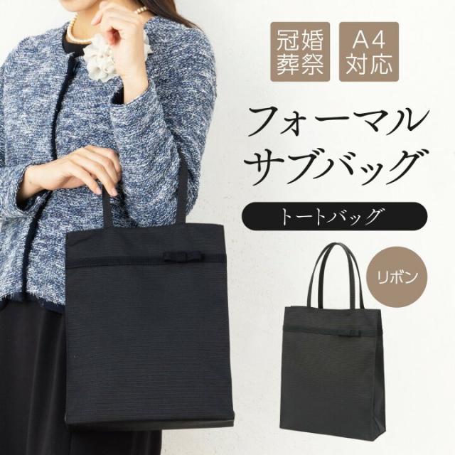 | サブバッグ フォーマルバッグ トートバッグ A4 黒 マチ 慶弔両用 リボン レディース |