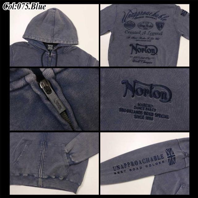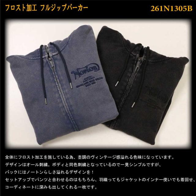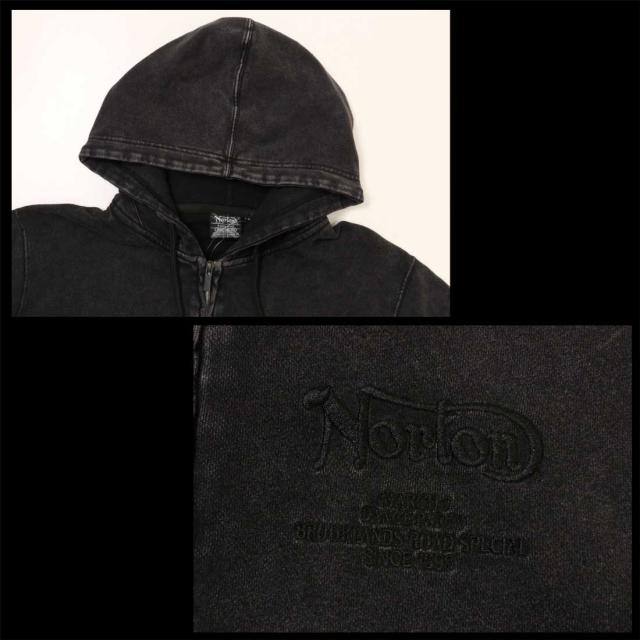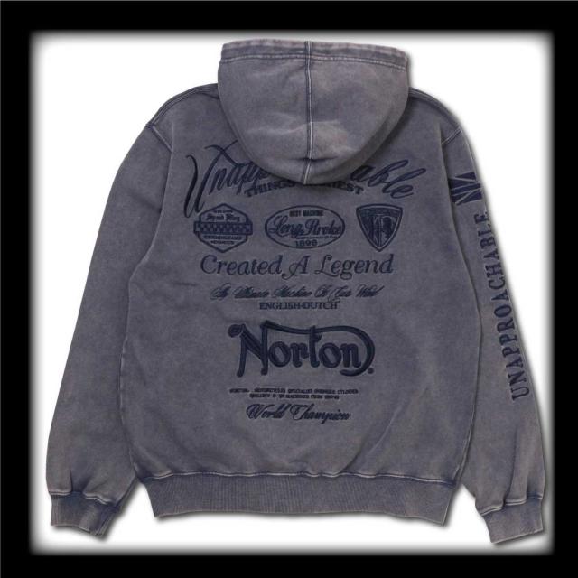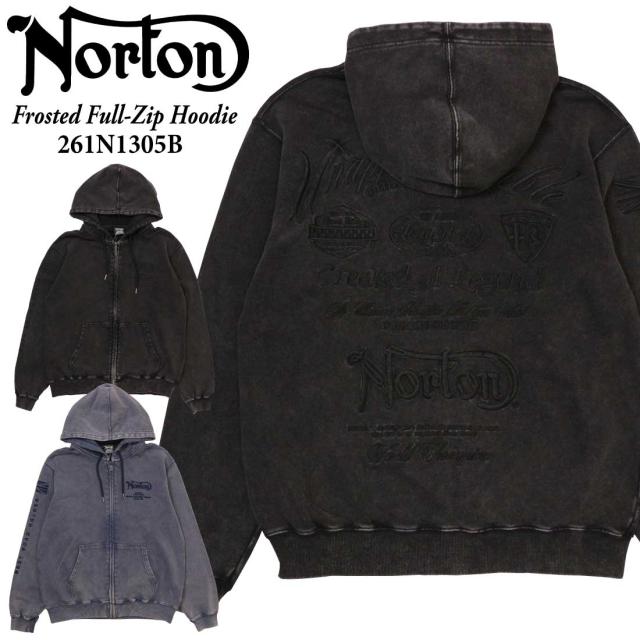 Norton ノートン 服 長袖 パーカー 261n1305B ロゴ フロスト加工 フルジップパーカー 刺繍 アメカジ バイカー メンズ 服 ファッション
