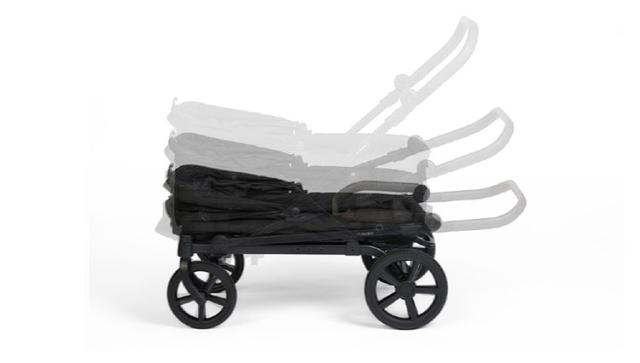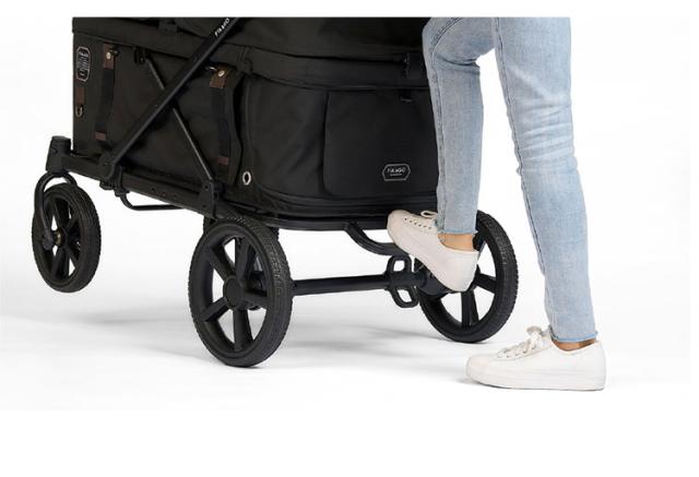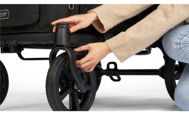 前輪側に牽引バーを装着すれば、引っ張って運べるキャリーワゴンスタイルに変身。