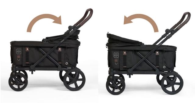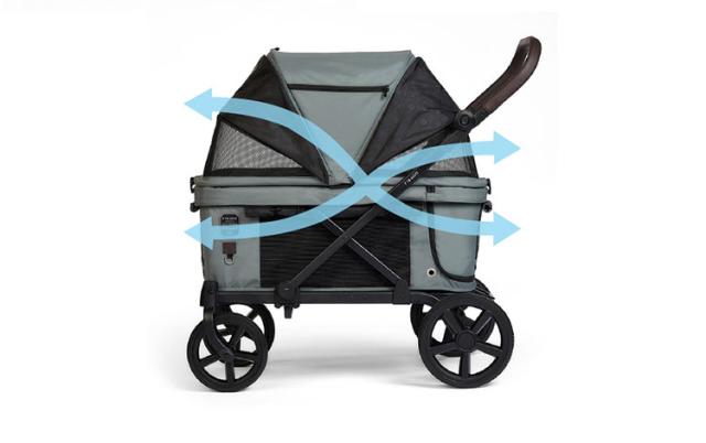 前開きはもちろん、後ろからも幌を開くことができるので、太陽の向きに応じて開く向きを変えたり、ペットと向き合ってお散歩が可能です。