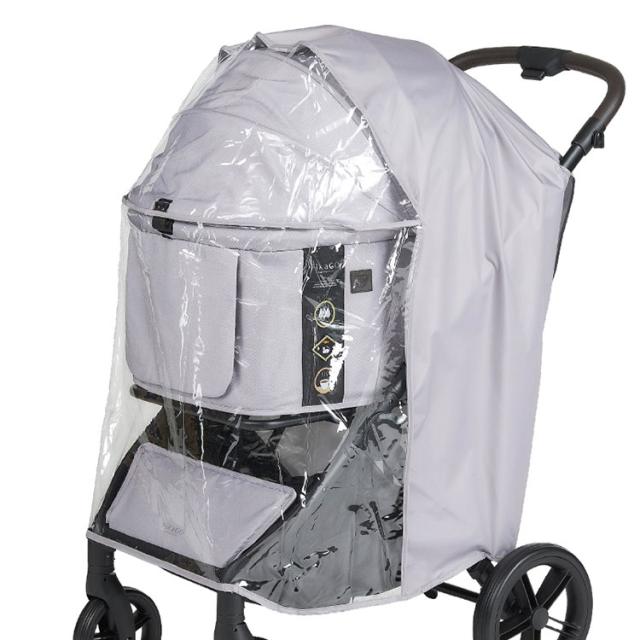 前方はビニール素材になっているので、レインカバーをしても前を見せながら走行することができます。