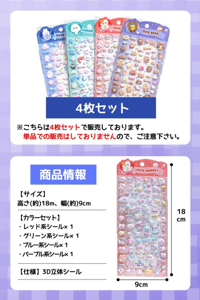 シール ぷっくり 【4枚セット】 ぷっくりシール シール帳 ぷにぷに ぷにぷにシール おはじきシール おしりシール 女の子 可愛い アニマル 動物 マシュマロシール 犬 猫 うさぎ 熊 ひよこ 3Dシール 立体シール
