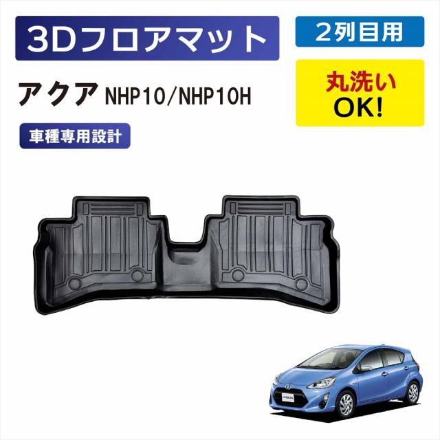 アクア ハイブリッド 専用 3Dフロアマット 車種専用 2列目 2列目用 後部座席 後席 立体 マット 車種専用設計 ズレ防止 泥 砂 水 防汚 汚れ防止 防水 水洗いOK カーマット ラバーマット NHP10 NHP10H 専用マット 車 AQUA トヨタ TOYOTA