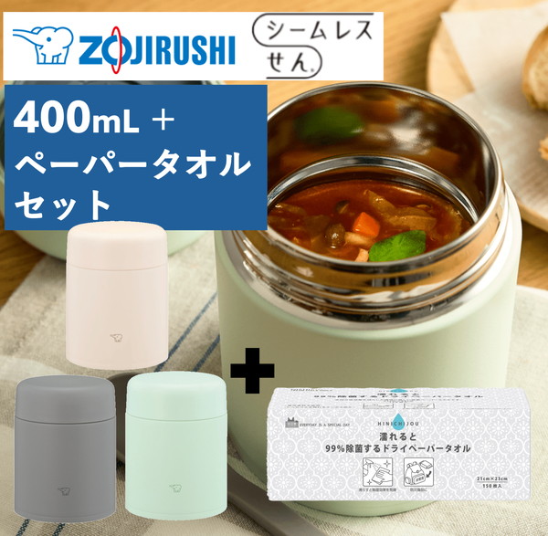 象印 スープジャー 400ml ステンレス ペーパータオル セット 食洗器対応 保温 保冷 シームレス SW-LA40 NKZ-3176-1